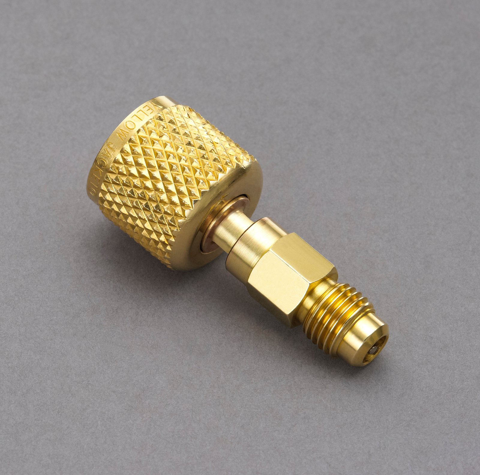 Yellow Jacket 19172 3/8″ Female QC x 1/4″ Male flare. All couplers have Schrader valve cores in Male flare end. Female coupler end has deep knurling for easy handling. Patented CH14 Adjust-a-Valve opener in all 1/4″ Female ends. The Yellow Jacket 19172 is Made in the USA