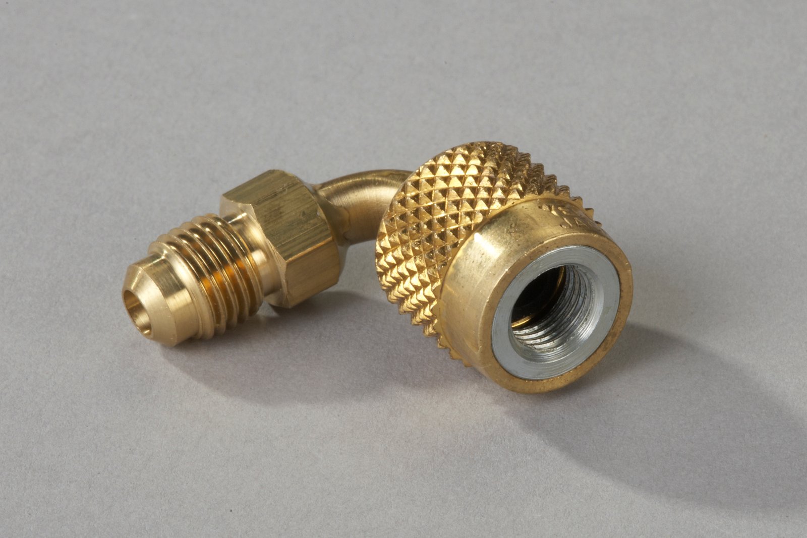 Yellow Jacket 19220 3/16″ Female Quick Coupler 90 Degree x 1/4″ Male Flare with deep knurling for easy handling.